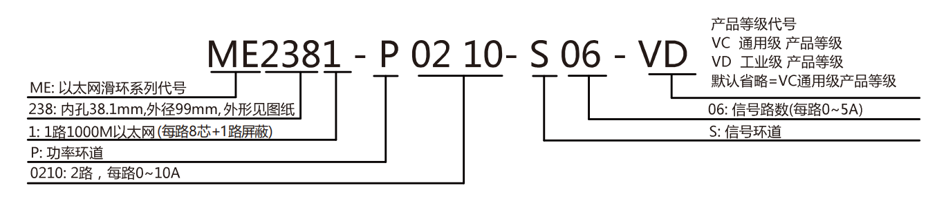 ME2381单通道以太网滑环系列选型表