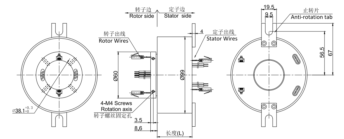 • · ME2382系列1000M以太网滑环,网线导电滑环,内孔38.1mm,外径为标准99mm的紧凑型整体式结构的2通道100M/1000M 以太网整体式精密导电滑环。