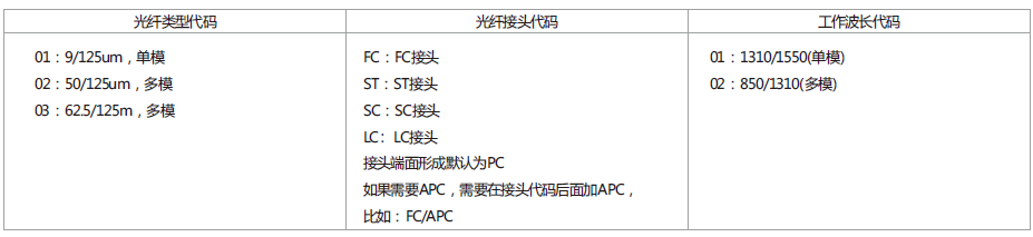 型号订购说明: