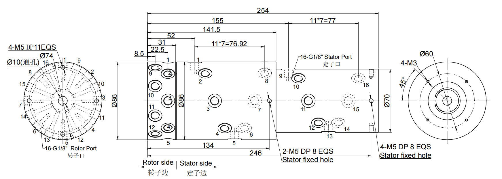通道数16进16出, G1/8"工作寿命1000万转以上