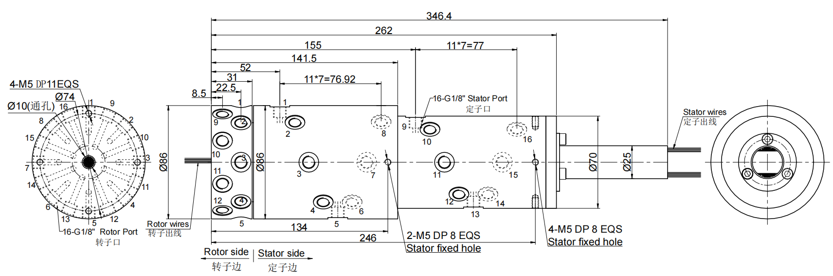 MK161(纯气动旋转接头) 尺寸图 16进16出G1/8"牙