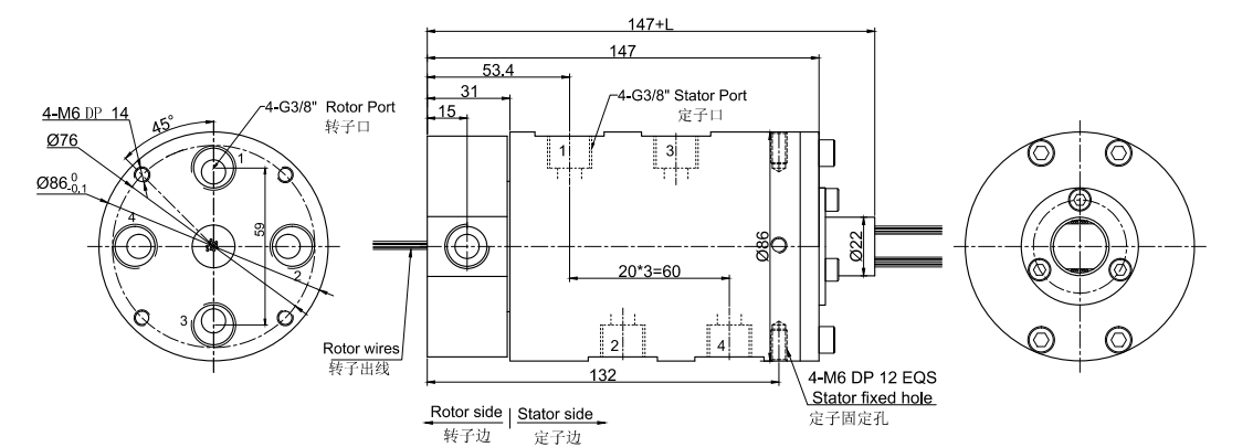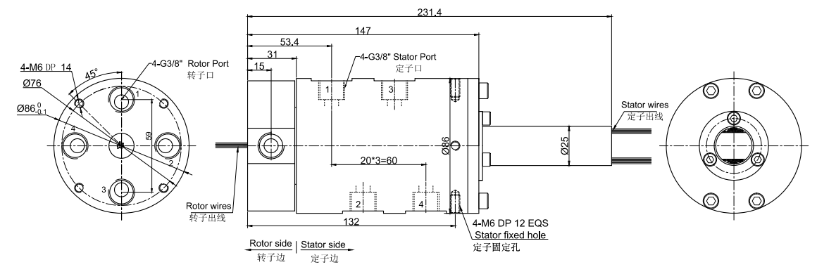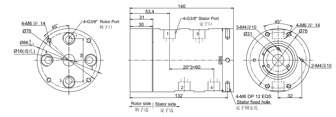 MKD43(纯气动旋转接头) 尺寸图 4进4出G3/8"牙