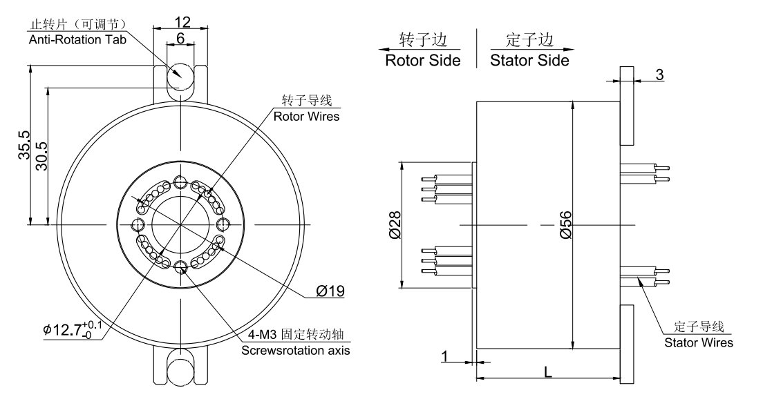 扁平盘式滑环,主要应用对安装高度有严格限制的场合,要求360度陆续在旋转且需要保证电源,数字信号,模拟信号不能中断:如旋转门,医用CT,安检设备,以及其他工业自动化设备,智能制造设备, 焊接机器人等;