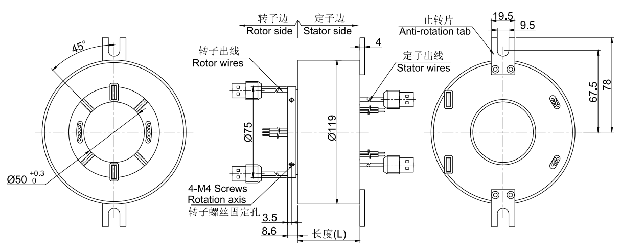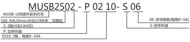 • · MUSB2502系列USB滑环, 内孔50mm, 外径为标准119mm的紧凑型整体式结构的2通道 USB1.0/USB2.0整体式精密导电滑环,