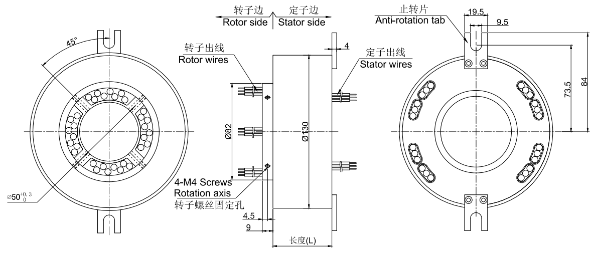 • · MW2050系列是内孔50MM的大电流通孔滑环,中空可用轴安装或者过气液导管。